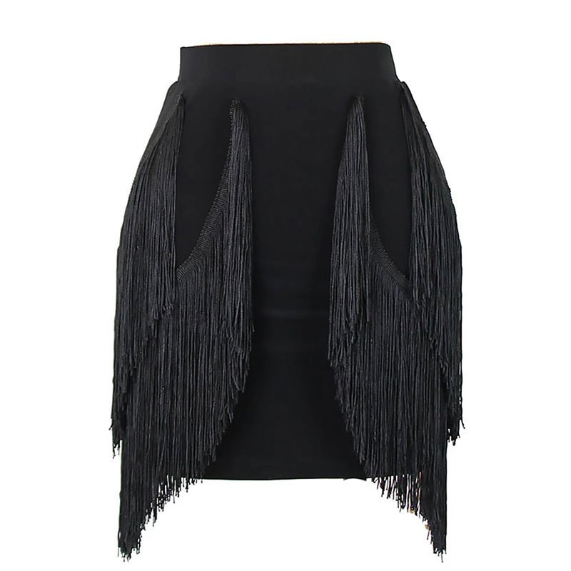 Φούστα λάτιν με ιδιαίτερα πλούσια κρόσσια τα οποία προσφέρουν υπέροχη κίνηση μαγνητίζοντας τα βλέμματα σε κάθε σας χορευτική φιγούρα.