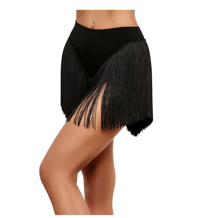 Εκρηκτική φούστα λάτιν με ιδιαίτερο κόψιμο στους μηρούς και πλούσια κρόσσια.
